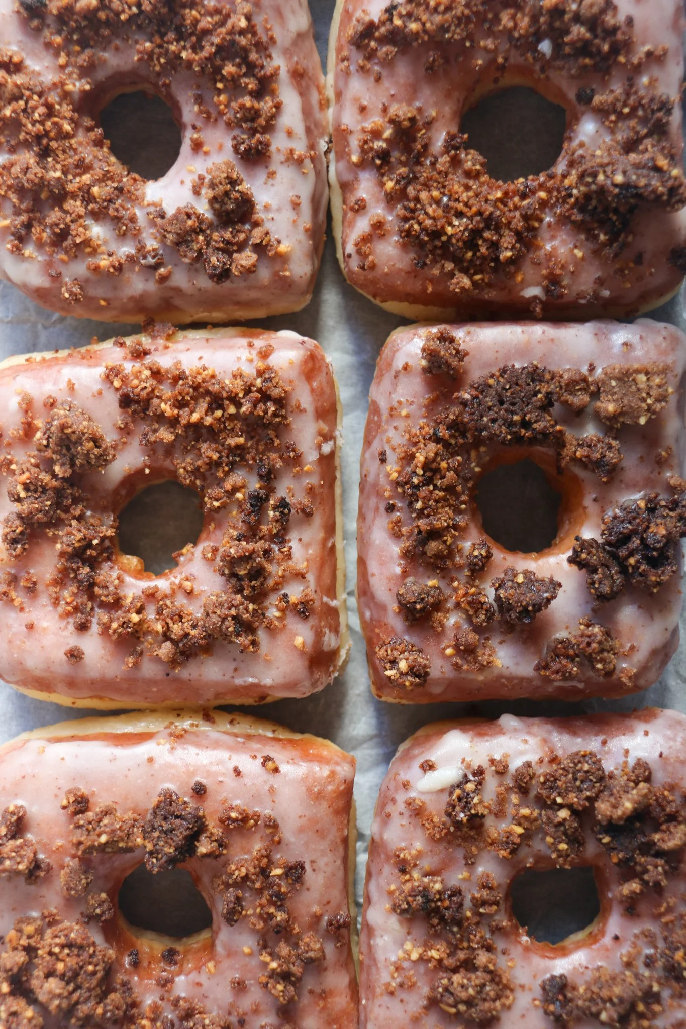 Brown Butter Glazed Doughnuts with a Hazelnut Chocolate Crunch