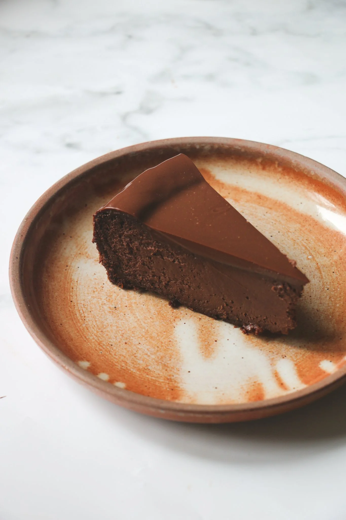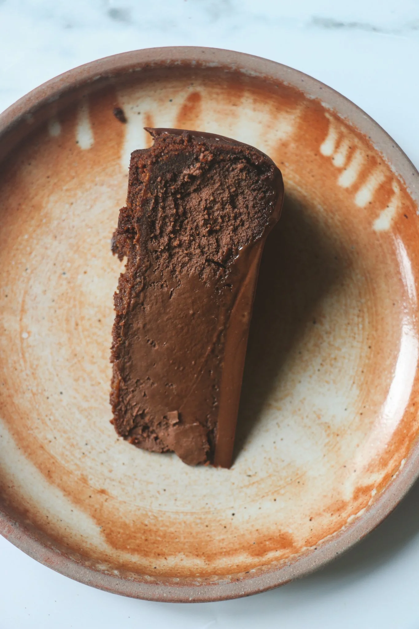 I wanted this to be decadent and rich but not too heavy. I went with a chocolate speculaas biscuit base with a good pinch of sea salt to combat the sweetness. The chocolate cheesecake filling has a generous helping of good-quality dark chocolate and four shots of espresso. This really enhances those chocolatey notes. Once baked, it’s finished with a layer of silky smooth ganache made with both dark and milk chocolate for both sweetness and depth of flavour. I was so happy with how this turned out, as was my partner! You would think with all of the chocolate that it would be a heavy and dense dessert but it’s surprisingly light.