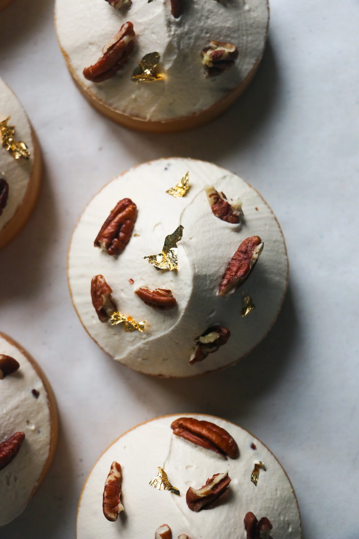 To finish they just need a few pieces of toasted pecans and a few flecks of gold leaf to bring them to life.