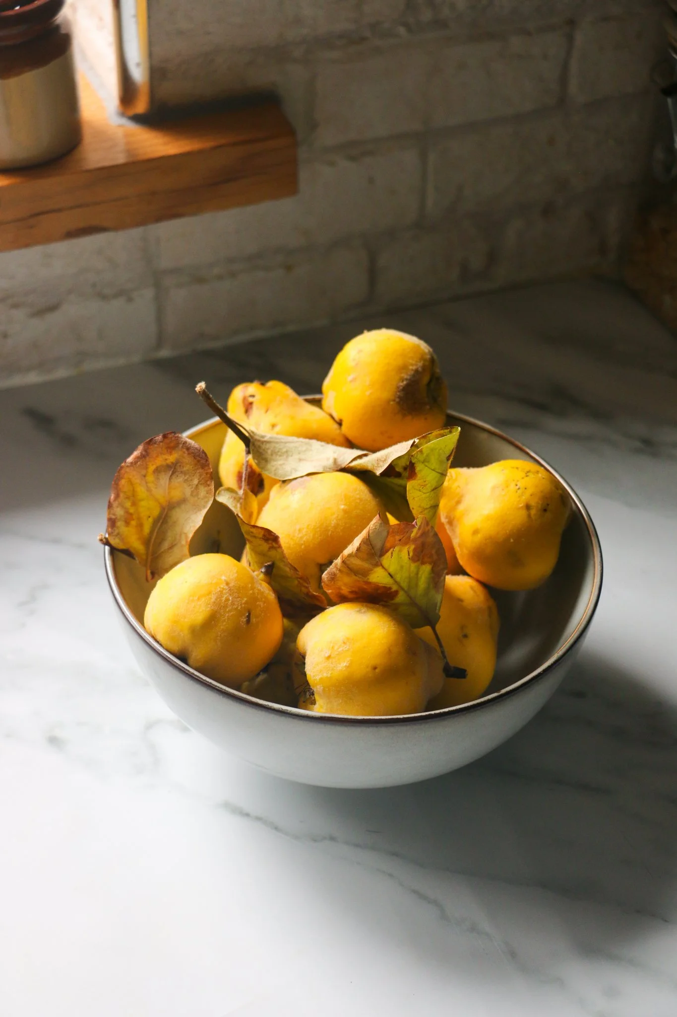 This is Autumn in a bowl. Rich, warm rice pudding speckled with vanilla bean adorned with ruby red poached quinces. Quince are a fruit I rarely get to use as they’re quite difficult to get hold of. I never see them in the supermarket! They require some love to get them ready to eat but it’s so worth it. Once poached in a fragrant syrup for 3 hours, they turn from hardy and bitter to a soft, aromatic fruit with a gorgeous scarlet colour.